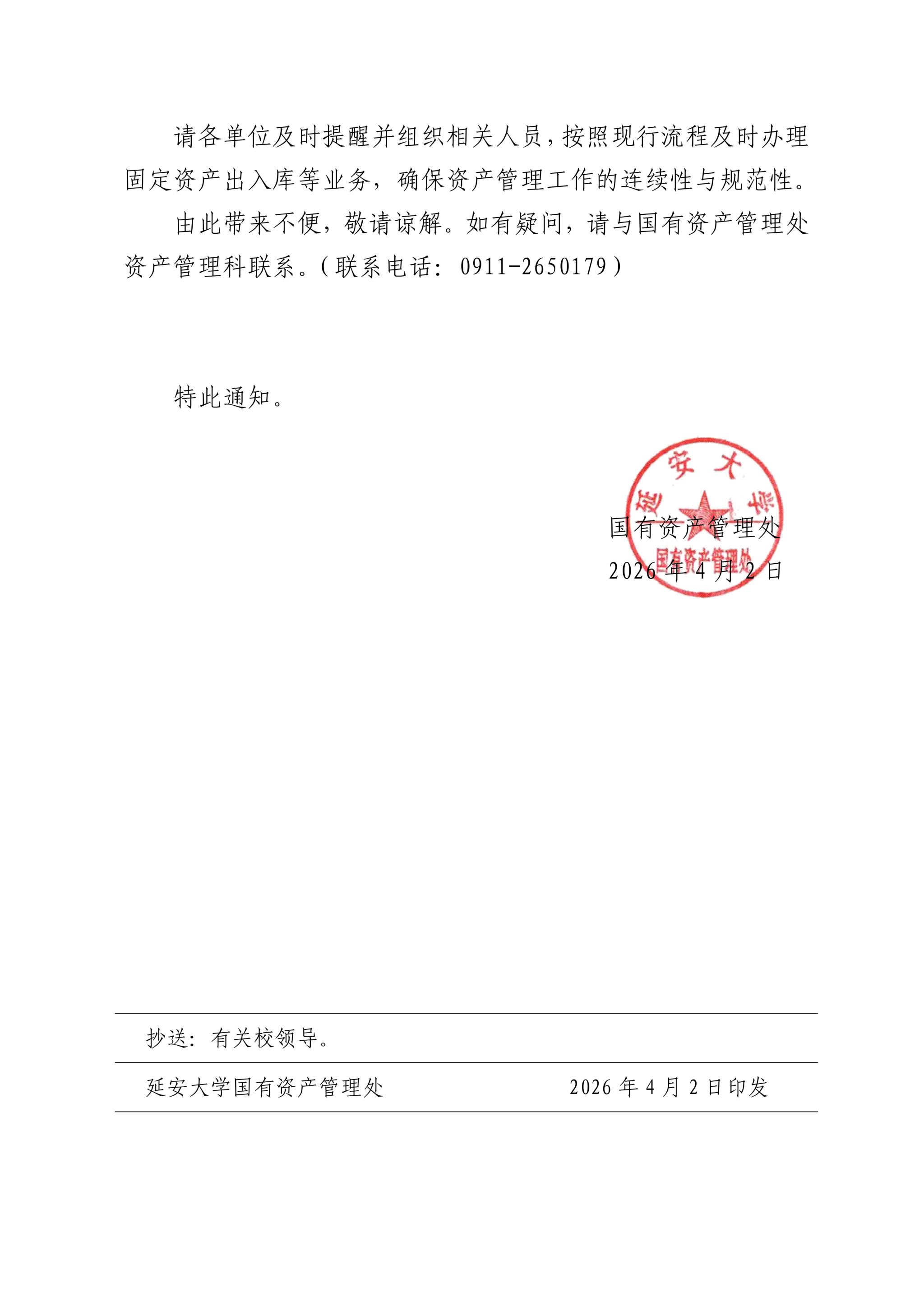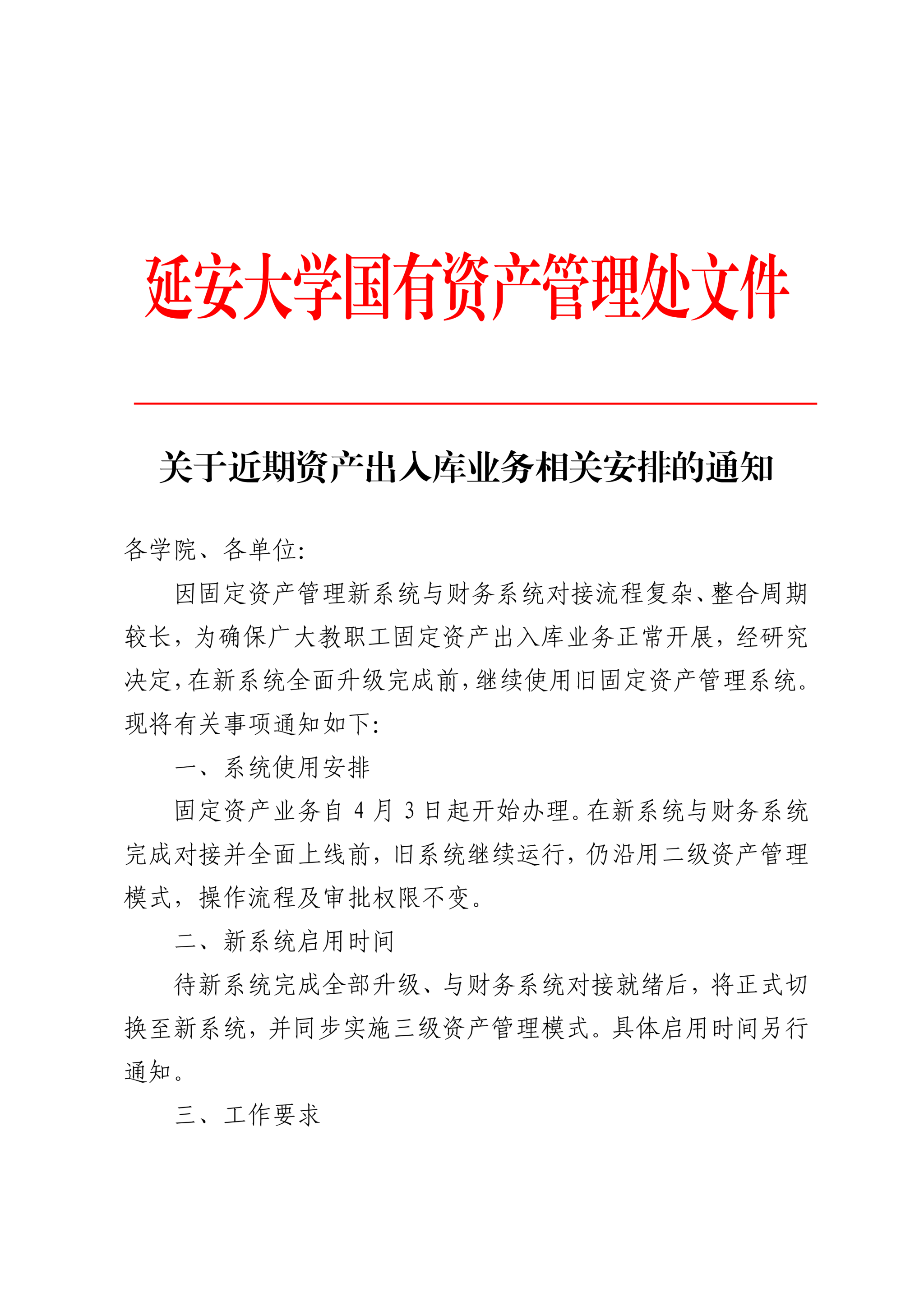 关于近期资产出人库业务相关安排的通知